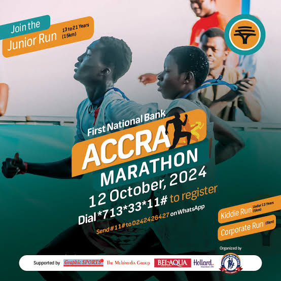 First National Bank Accra Marathon is the most prolific marathon in Ghana . The marathon ( previously known as the Accra Milo Marathon is an offspring of the Dansoman Keepfit club . There are 3 categories of run including ; Mass run – 21.1km. Junior run and Corporate 10km .